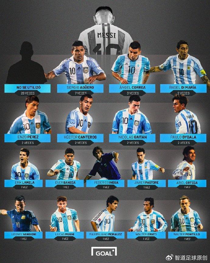 据数据统计,自从梅西2009年4月开始身披阿根廷国家队的10号球衣以来,他因伤缺席阿根廷比赛时穿过10号球衣的阿根廷球员有不少,但不得不说阿根廷10号太重了,一般的球员真背不动。2026年美加墨世界杯就是梅西最后一舞,那么问题来了,未来谁最有可能长期身披阿根廷10号,是马斯坦托诺,还是埃切维里?我们拭目以待吧!